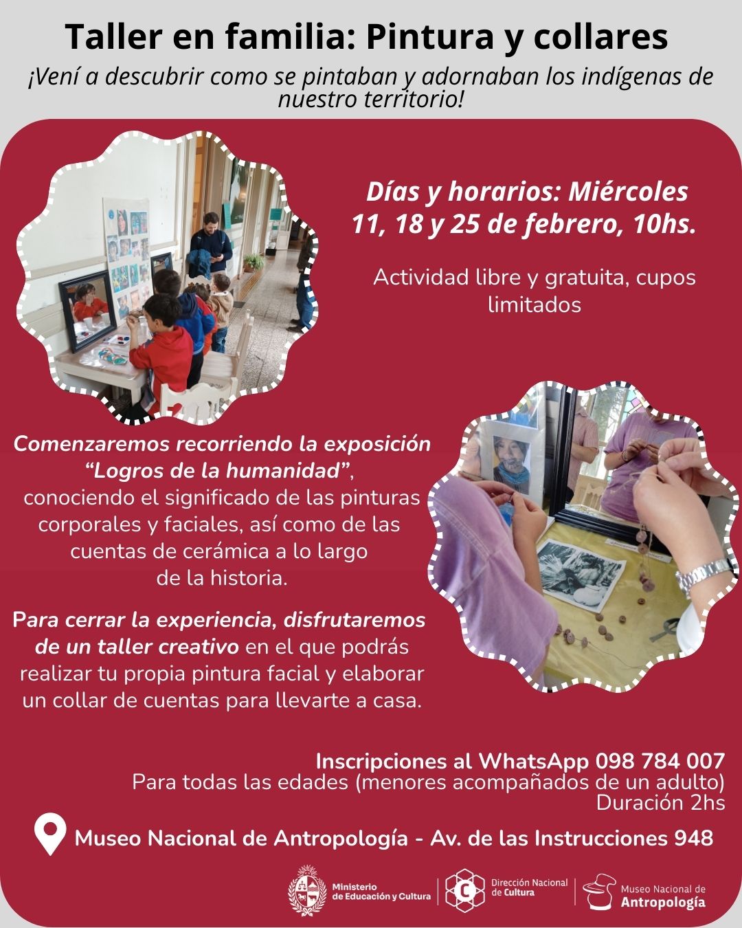 Días y horarios: Miércoles 11, 18 y 25 de febrero, 10hs.
